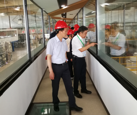 牛主任一行实地参观了电视机/电脑处理生产线、进口德国冰箱处理生产线、洗衣机处理生产线,并在华新环保展厅详细了解固体废物回收和环保处理情况。