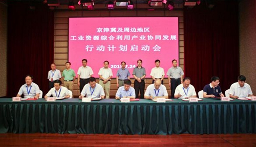 为贯彻落实《中共中央国务院关于加快推进生态文明建设的意见》、《京津冀协同发展规划纲要》,探索资源综合利用产业区域协同发展新模式,2015年7月24日,工业和信息化部在唐山市召开京津冀及周边地区工业资源综合利用产业协同发展行动计划启动会。工业和信息化部有关司局,北京、天津、河北、山西、内蒙古、山东等6省市工业和信息化主管部门相关负责同志,重点园区、企业和科研机构代表150余人参加了会议。工信部节能与综合利用司司长高云虎出席会议。会议印发了工业和信息化部副部长毛伟明关于“深入落实京津冀协同发展战略扎实推进综合利用产业协同发展”的书面讲话材料。